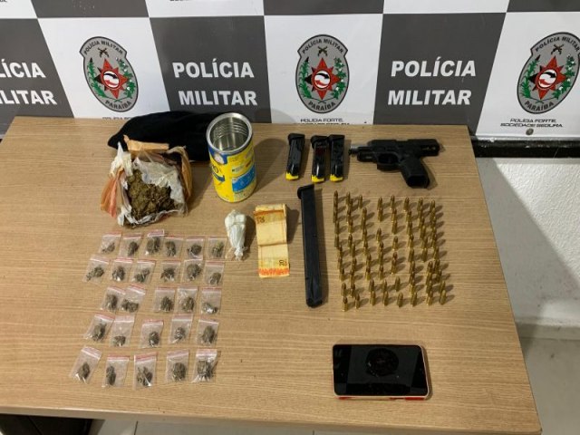 Durante operação na madrugada deste sábado (14), no bairro do Renascer, em Cabedelo, a Polícia Militar prendeu um suspeito que estaria atuando na contenção (segurança) do tráfico de drogas. O acusado portava uma pistola com carregadores e usava um colete a prova de balas. Com ele, também foram apreendidas maconha, cocaína e balança de precisão.